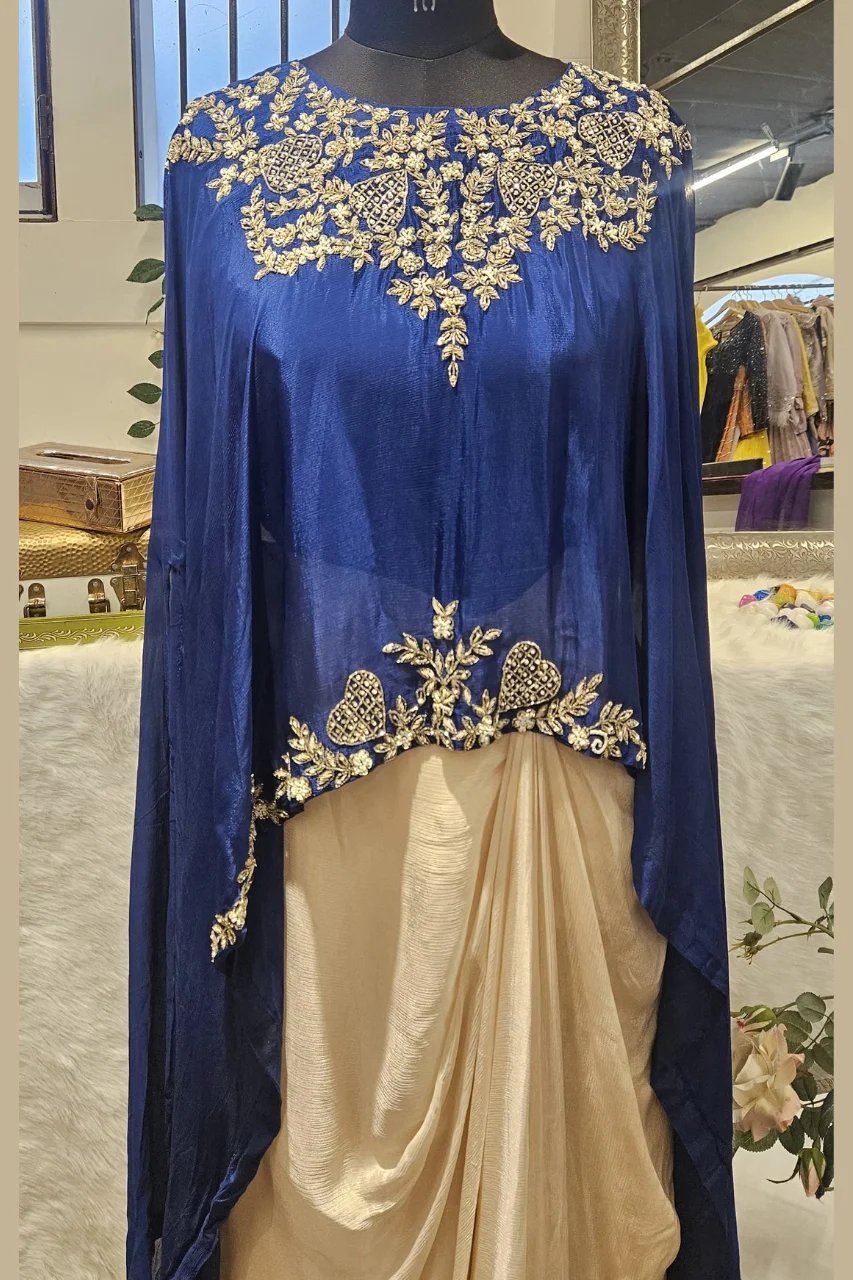 Elegant Handcrafted Drape Skirt And Poncho Set