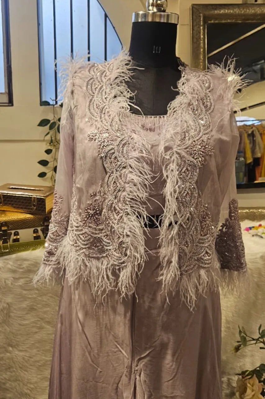 Lilac Jacket Plazzo Set With Handwork